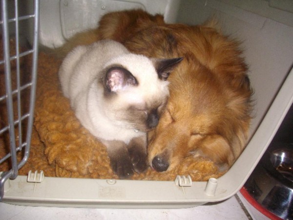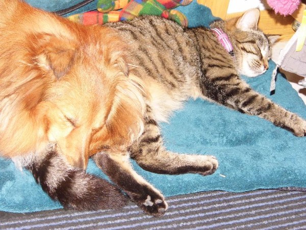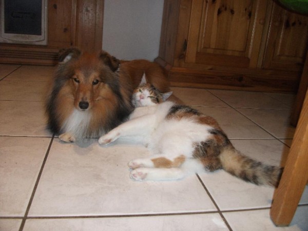 Hier schmiegt er sich an Chérie..alle friedlich zusammen.