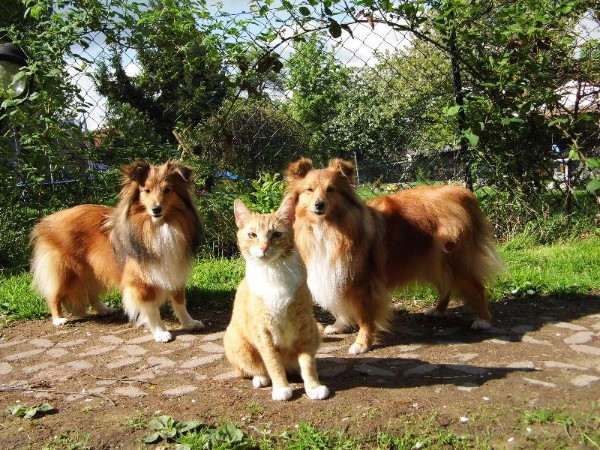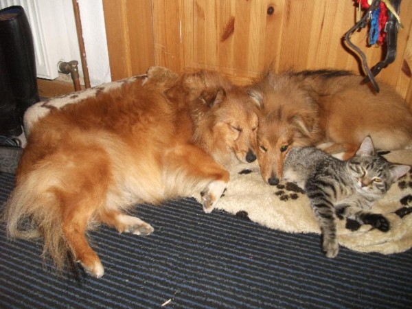 Hier kuschelt Kater Sultan neben Alice vor Bonnie und Chérie.
