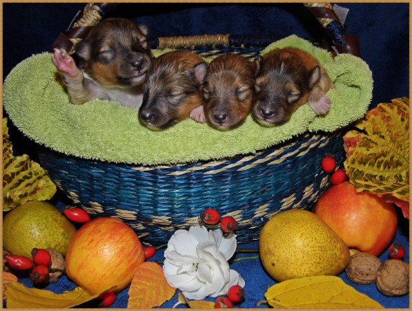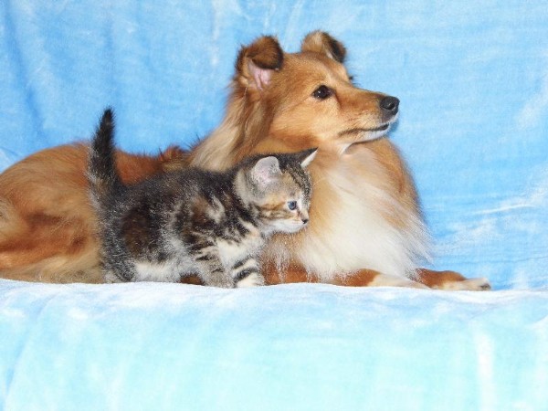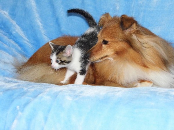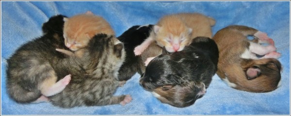 Die Welpen von Alice mit den Kitten von Jeanie.