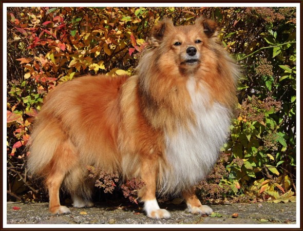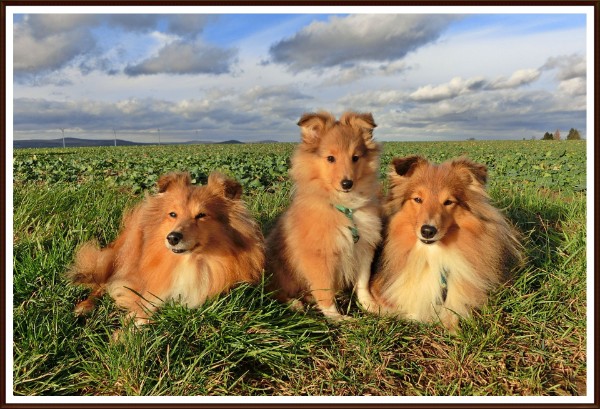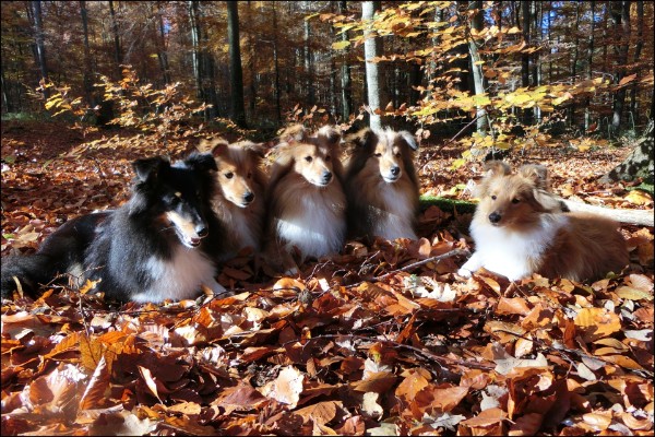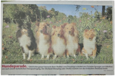 "Hundeparade. Gleich eine ganze Fotoserie ihrer Shelties vom Ponyhüge schickte uns Christine Spranger aus Udenhausen nach einem herbstlichen Fotospaziergang. Der Shetland Sheepdog oder Sheltie stammt von den britischen Shetland-Inseln."
