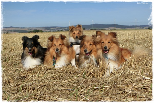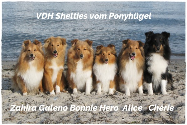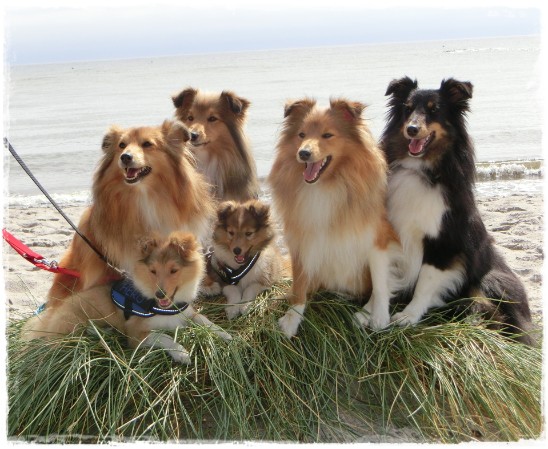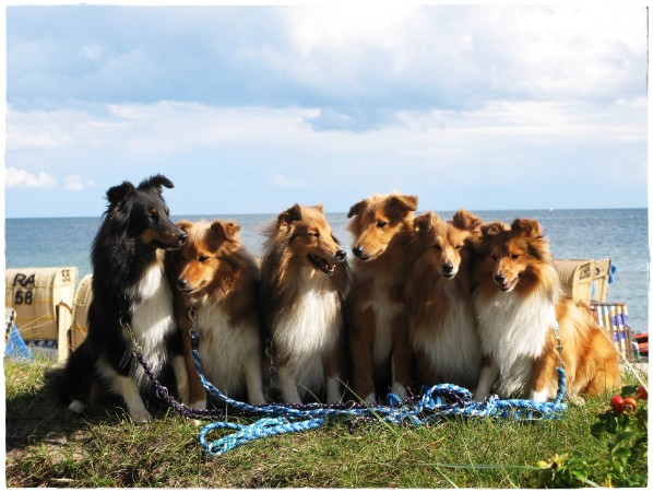 Von links: Chérie, Bonnie, Alice, Galeno, Zahira und Hero auf Fehmarn im Sommer 2016.