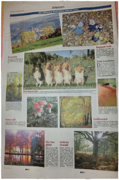 Unser Hundebild wurde auch auch beim Fotowettbewerb der Tageszeitung "Hofgeismar Aktuell" ausgewählt, wo die schönsten Herbstbilder gezeigt wurden! Es erschien am 6.11.15 auf Seite 4.