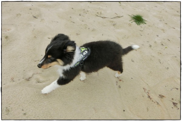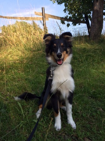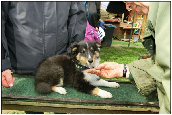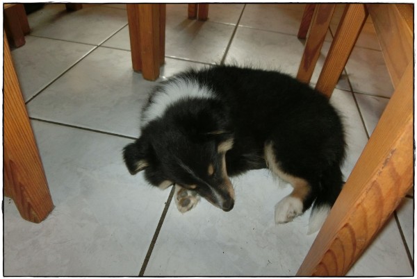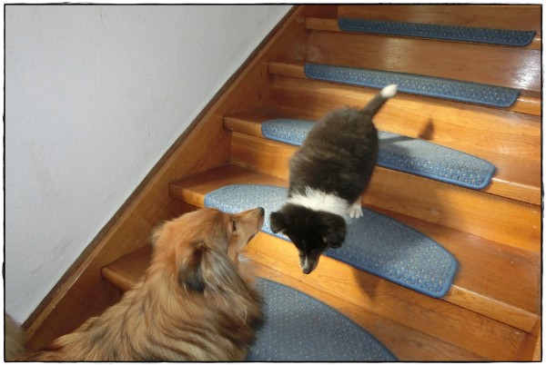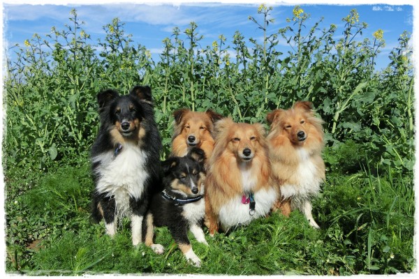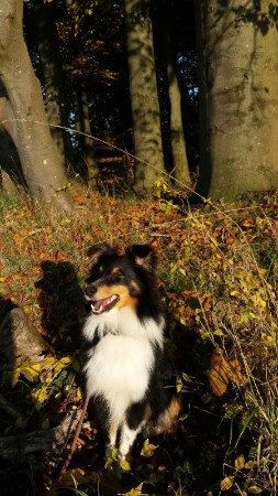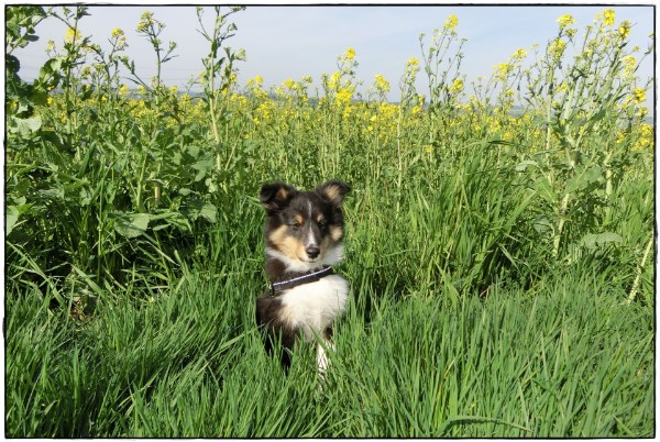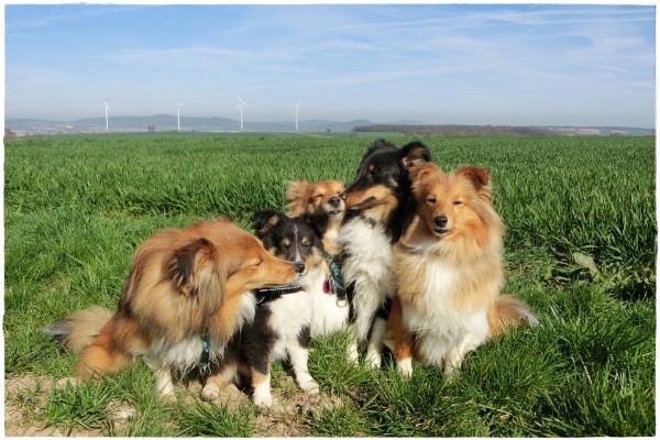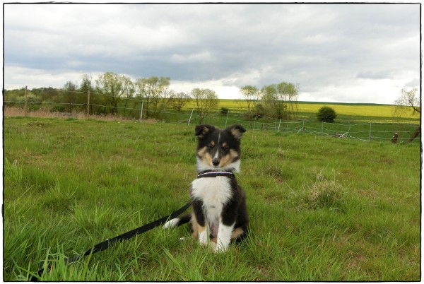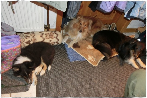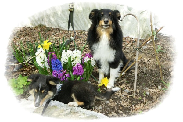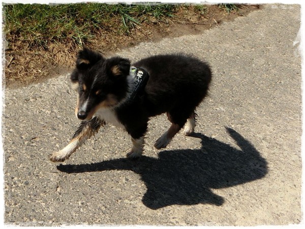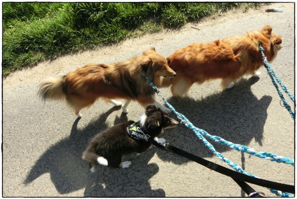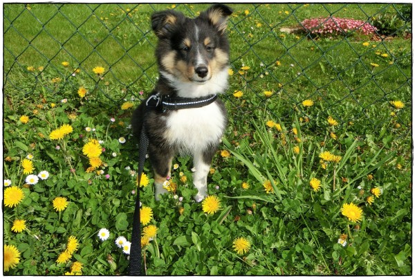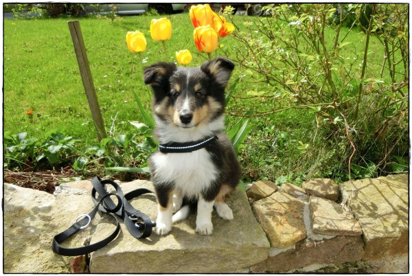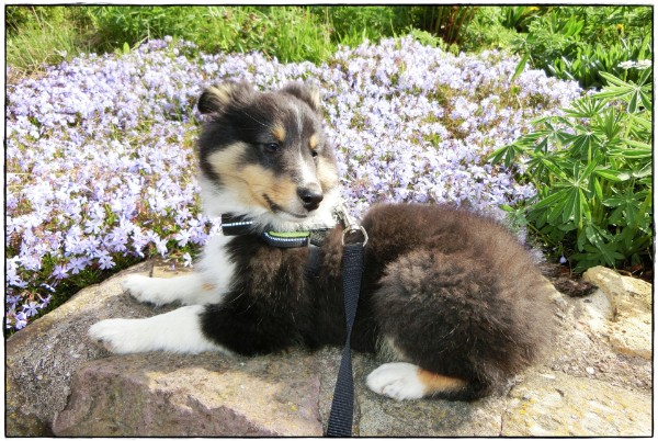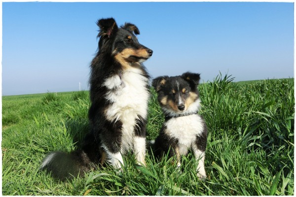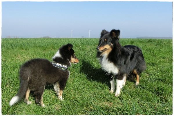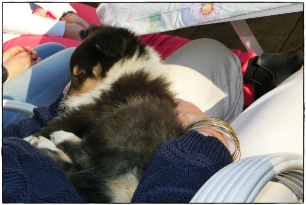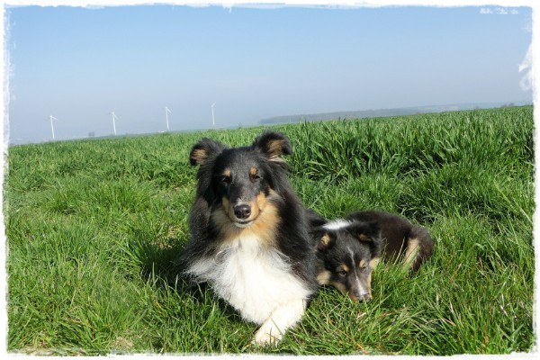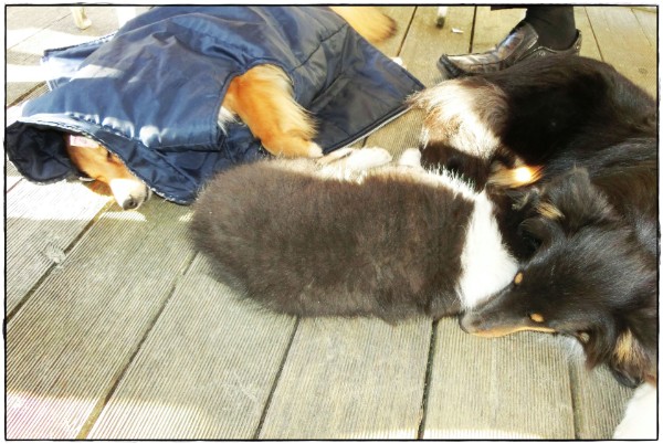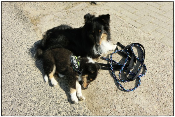 Auch draußen..wer keine Weste findet, kuschelt am Sheltie.