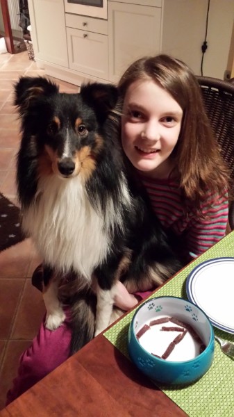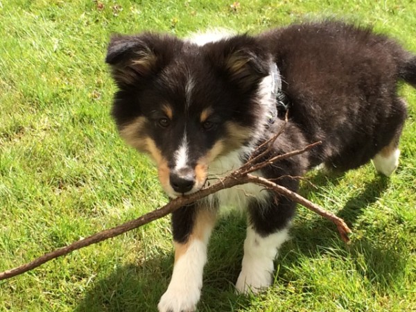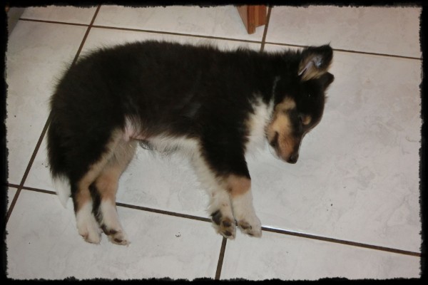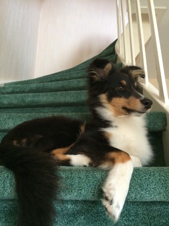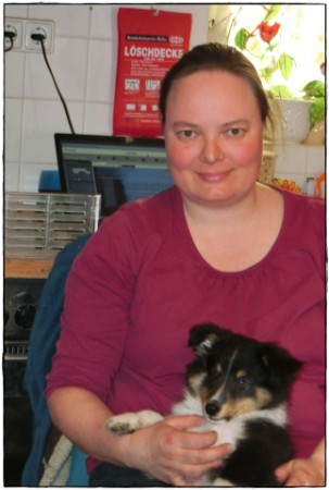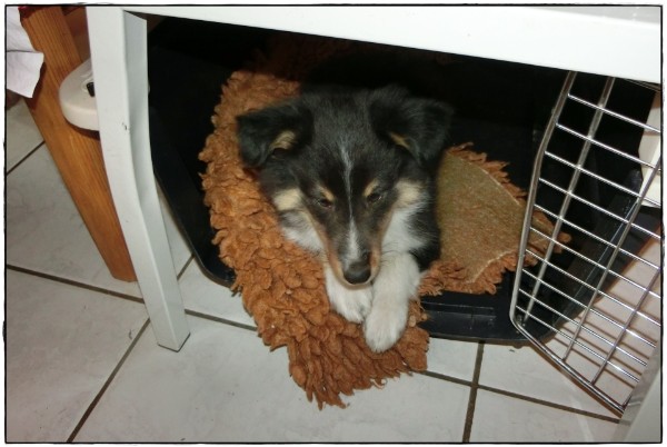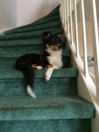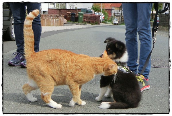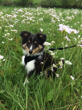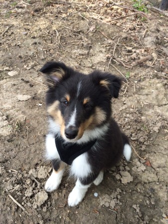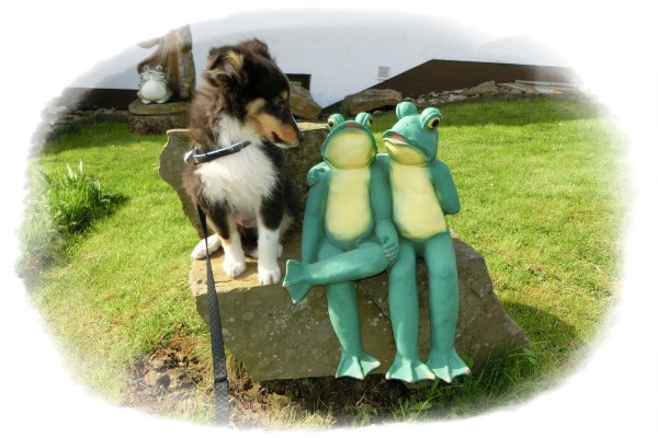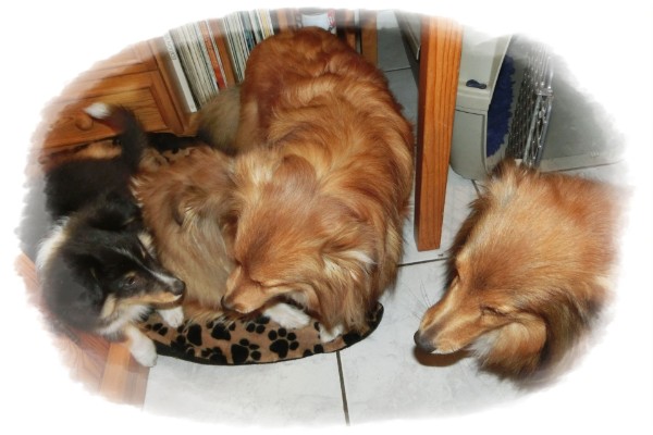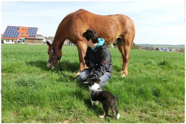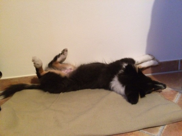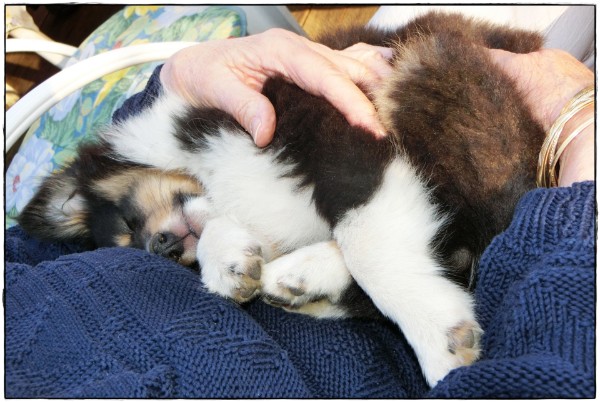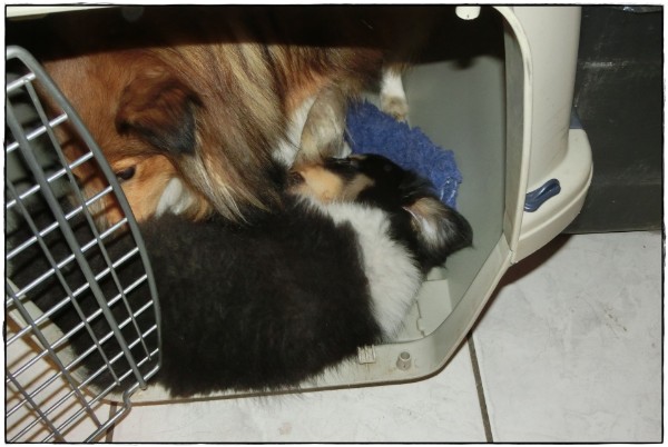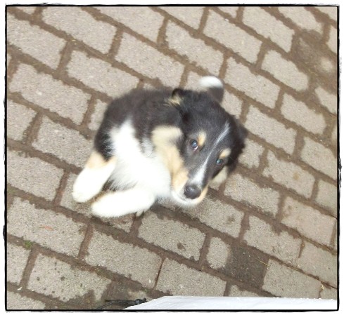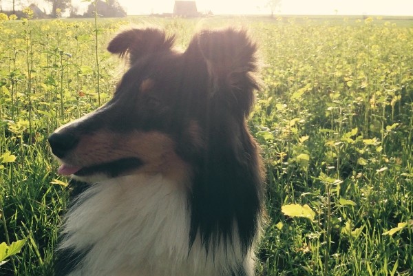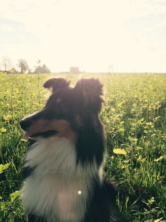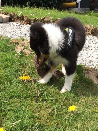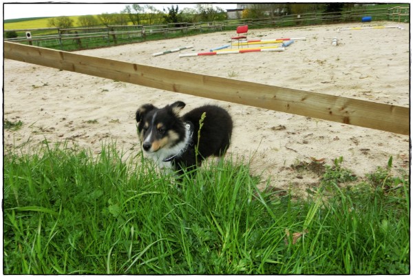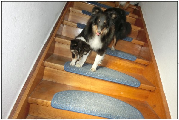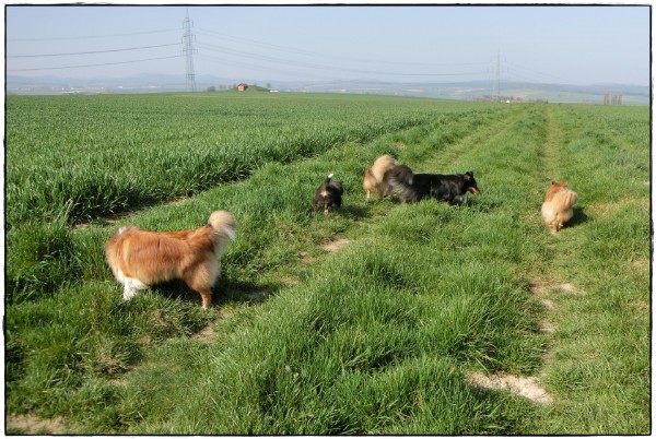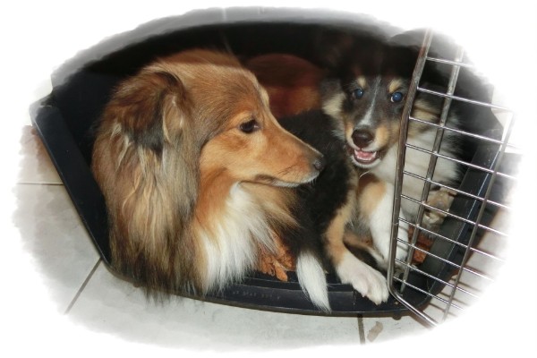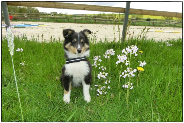Auch draußen..wer keine Weste findet, kuschelt am Sheltie.