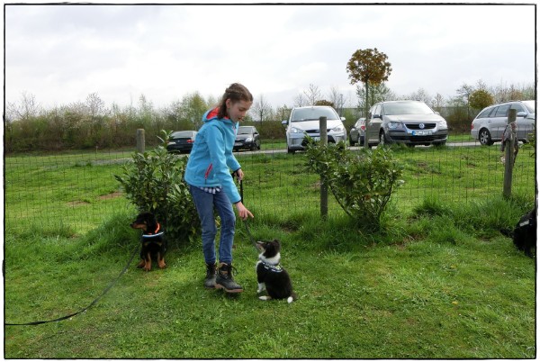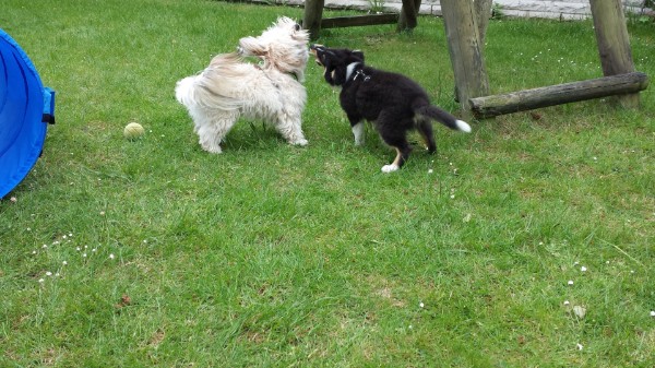 Seine 12. und letzte Woche hier bei uns beginnt für El Perro Foxi wieder mit dem Besuch in der Welpenstunde zusammen mit seiner Familie.
