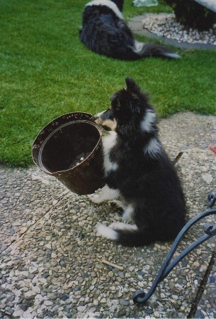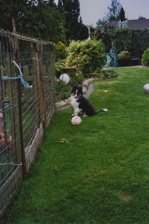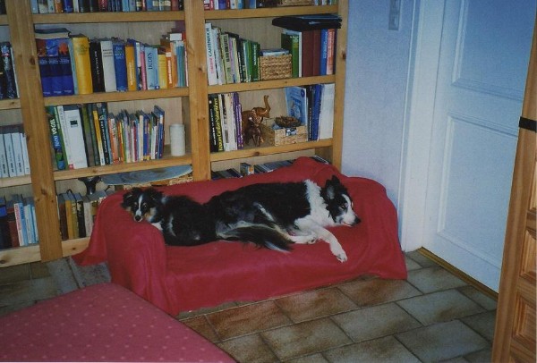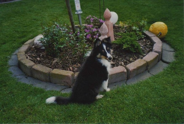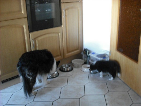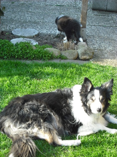 Eros/Maxi in seinem neuen zu Hause ab dem 11.04.2015 mit der Bordercolliehündin Sunny: