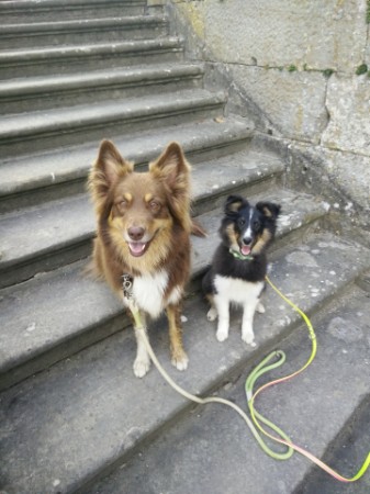 Hermine mit Frauchen beim Sheltietreffen mit uns beim Wasserschloß in Wülmersen.