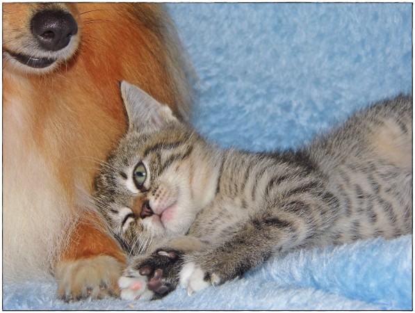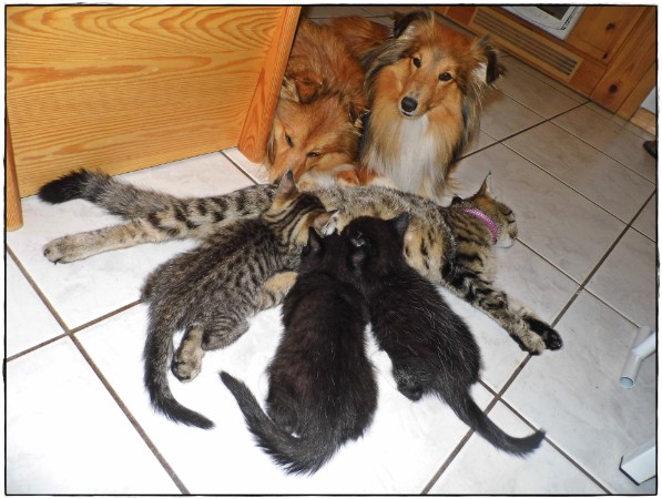 Für die Kätzchen gehören Hunde von Anfang an dazu: