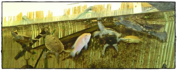 Unter Wasser leben auch einige Schwertträger, Salmler, Black Mollys, eine Schmerle und ein Wels.