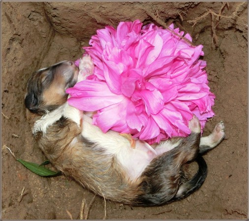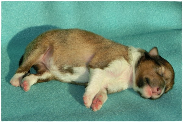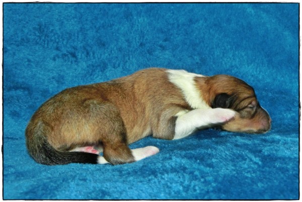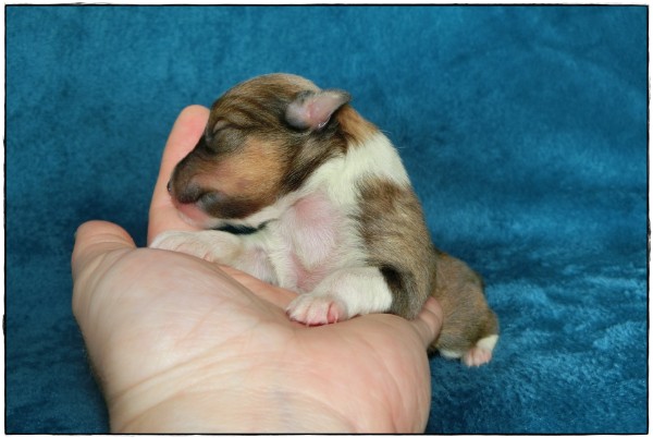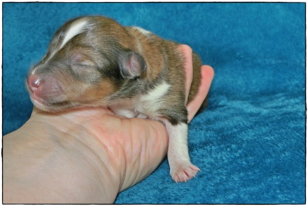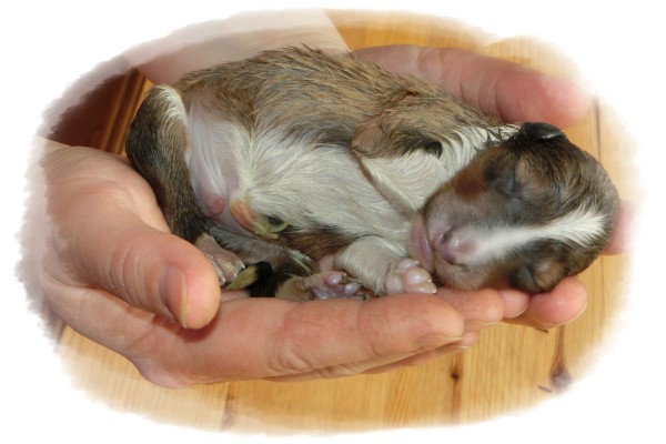 Leider hat es ihr erster Welpe, ein sehr großer Rüde mit 319 Gramm, nicht geschafft im Leben anzukommen.