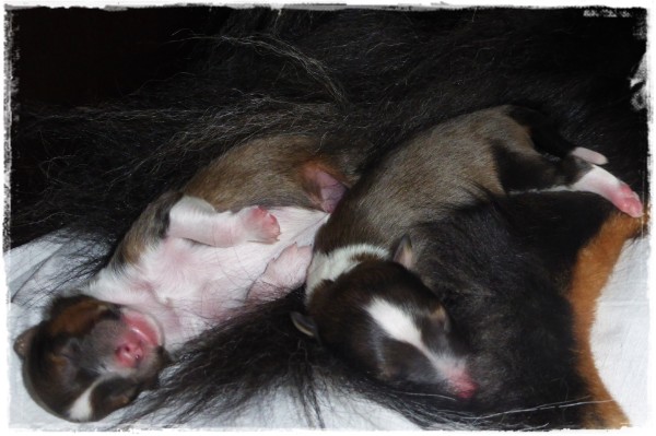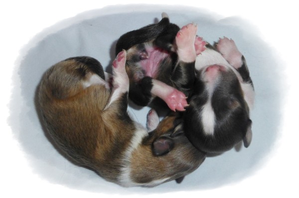 An ihrem zweiten Tag haben alle Welpen schon gut zugenommen.