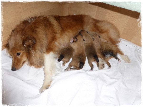 Mami Bonnie kümmert sich so fein um ihre vier Welpchen!