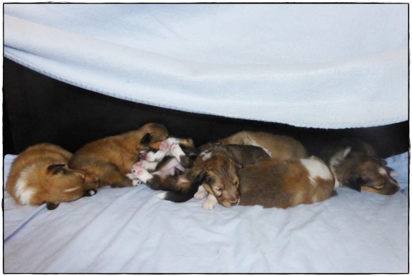 Gemeinsames Gruppenkuschel, von links: Isabella, India auf Jody, Jolie vor India und hinter Inca, rechts Jonna.