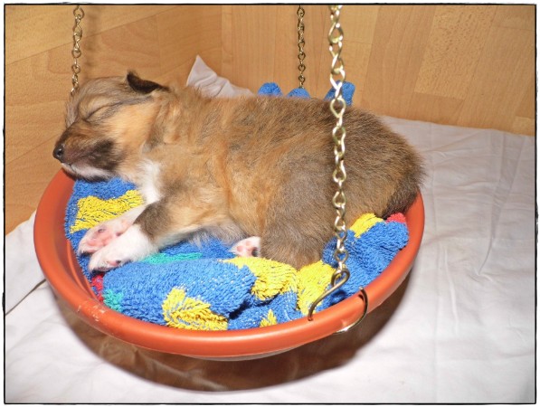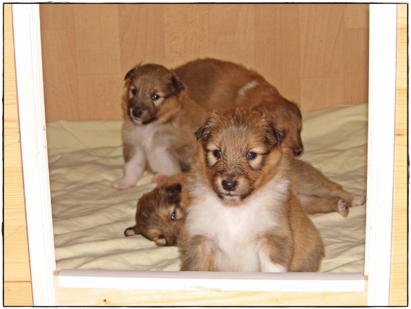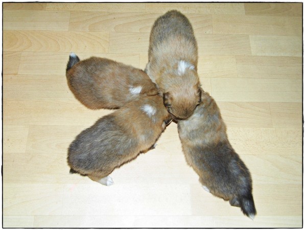 Zu Beginn der vierten Woche werden die Welpen immer neugieriger und aktiver..