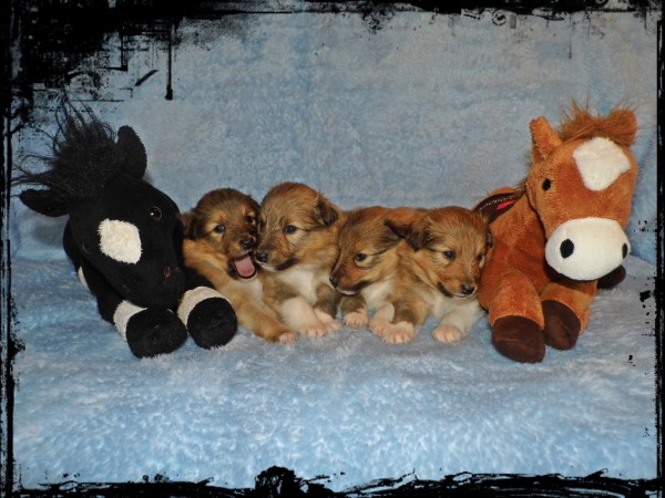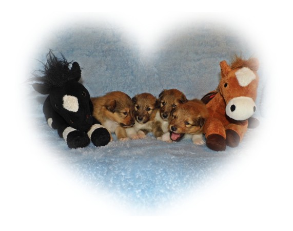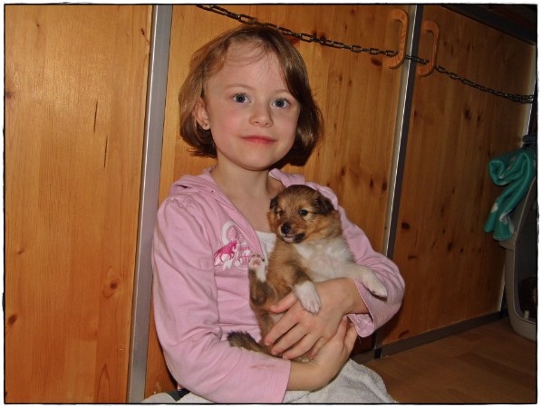 Nun wurde es auch Zeit, die Ponyhügelshelties an Ponys zu gewöhnen..