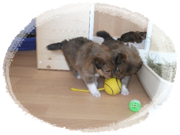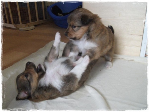 Nun sind unsere Welpen in der 4. Woche und toben schon wild herum:
