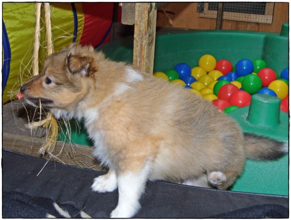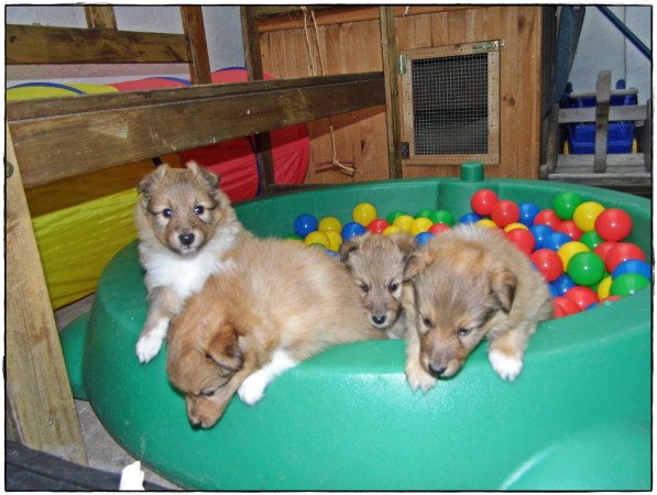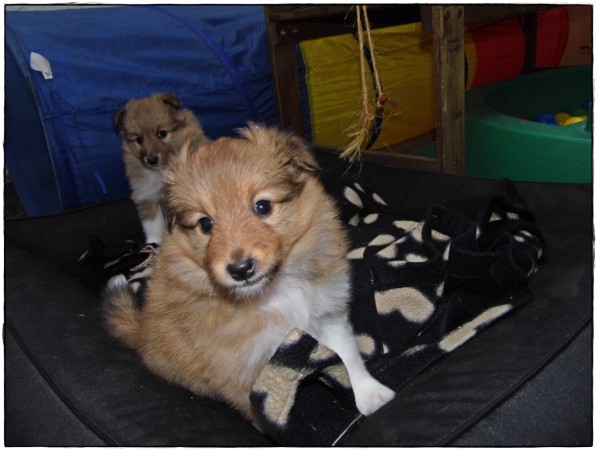 Nun sind unsere Welpchen schon in der fünften Woche, Zeit, unsere Schafshunde an Schäfchen zu gewöhnen!