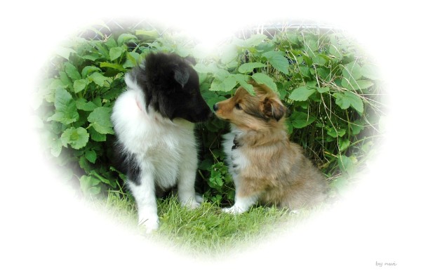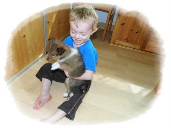 Der vier Wochen ältere Rave kuschelt mit Alice..