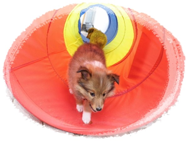 Amy im überdachten Hundespielplatz..im Tunnel..