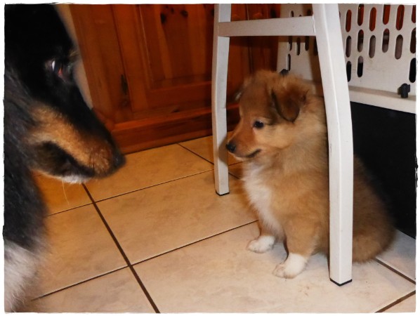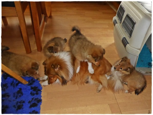 Hero kümmert sich um die Welpen.
