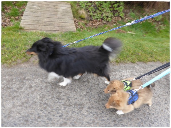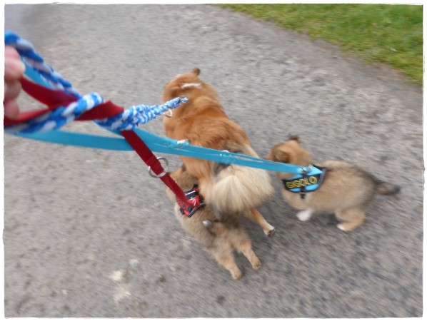 Hier laufen Golden Gigolo und Golden Gracy mit Bonnie.