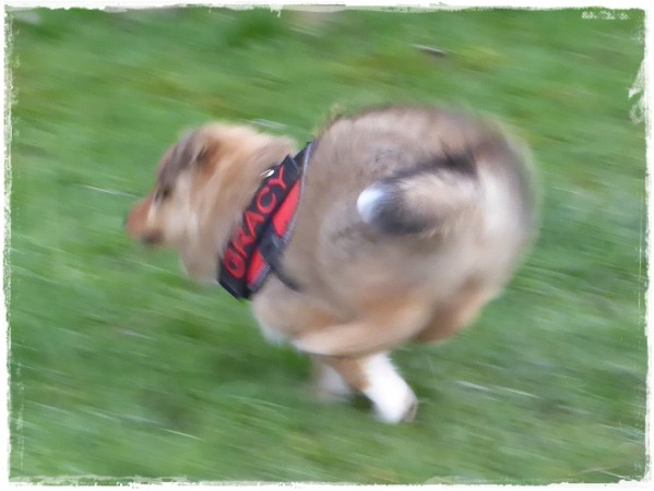 Golden Gracy kugelt durch den Garten.
