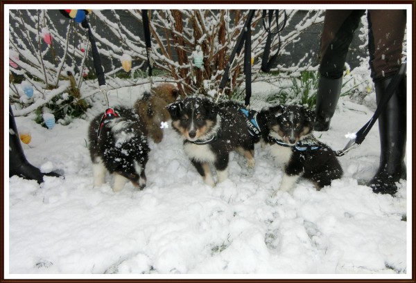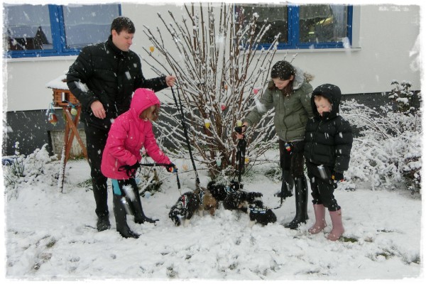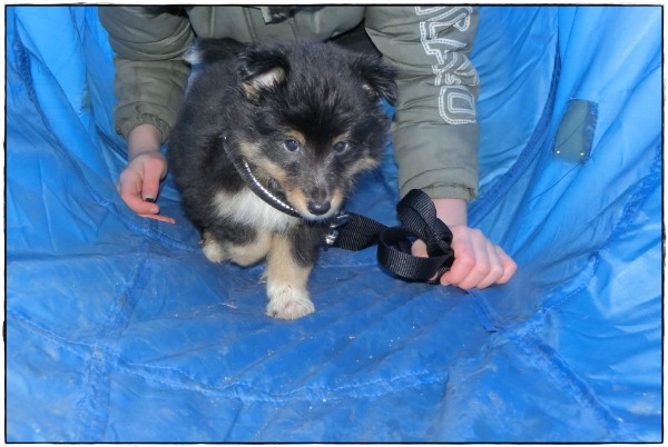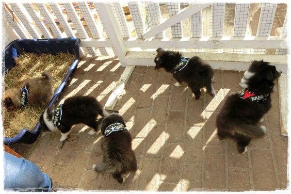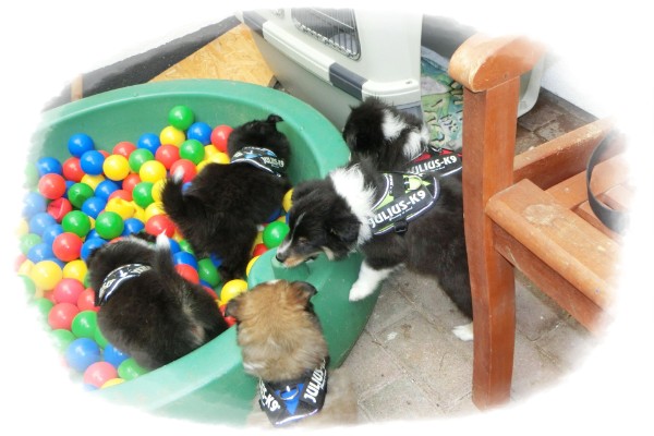 ..so geht es bei Sturm, Sonne, Regen, Hagel und Schnee die nächsten Tage wieder raus ins überdachte Welpenspielzimmer.