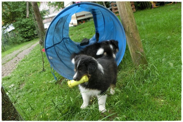 Auch im nassen Sandkasten haben sie Ende der 8. Wochen Spaß!