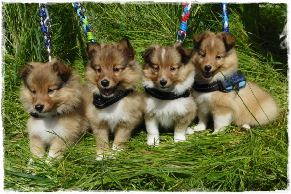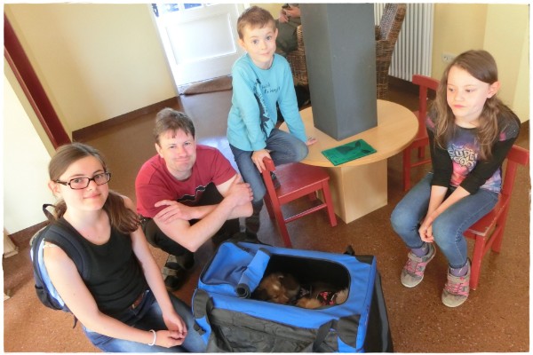 Die ganze Familie begleitet die Welpchen zum DOK Augenarzt.