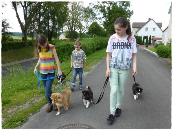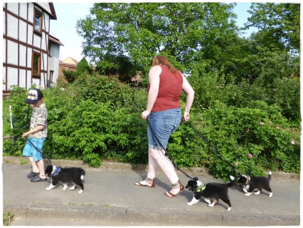 Wieder laufen sie fein an der Leine, mit Hermines Frauchen und Julian als fleißige Helfer dabei.