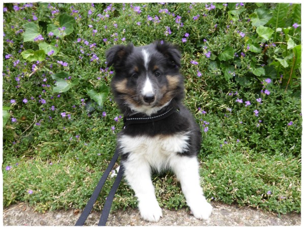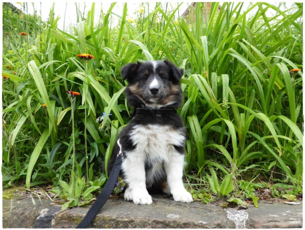 Zu Beginn der neunten Woche üben Hermine, Henry und Hannie wieder an der Leine laufen-mit Autolärm zu Gewöhnung.